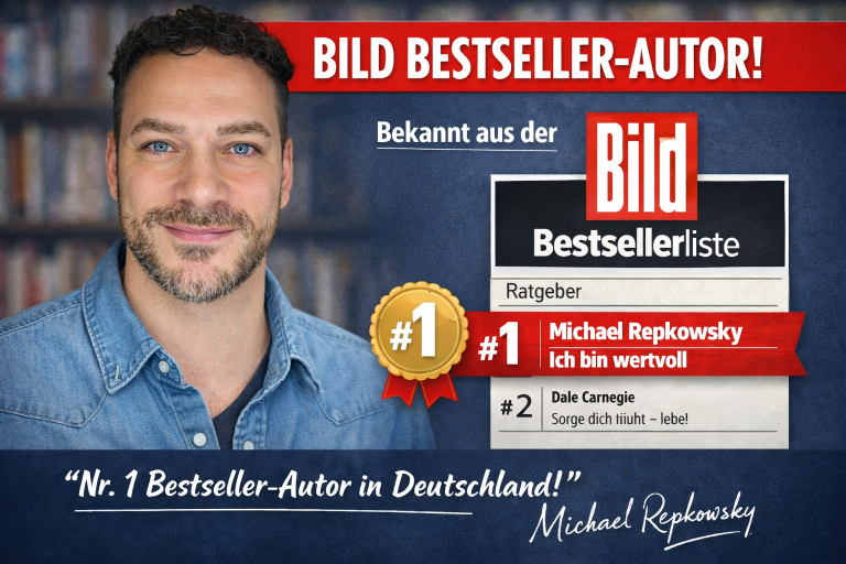 Ich bin u. A. durch meine Ratgeber-Bücher bekannt geworden. Nachdem ich in der BILD-Bestsellerliste auf dem 1. Platz landete, habe ich meinen Videokurs "Ich bin wertvoll" erstellt. Ein voller Erfolg! 🏆